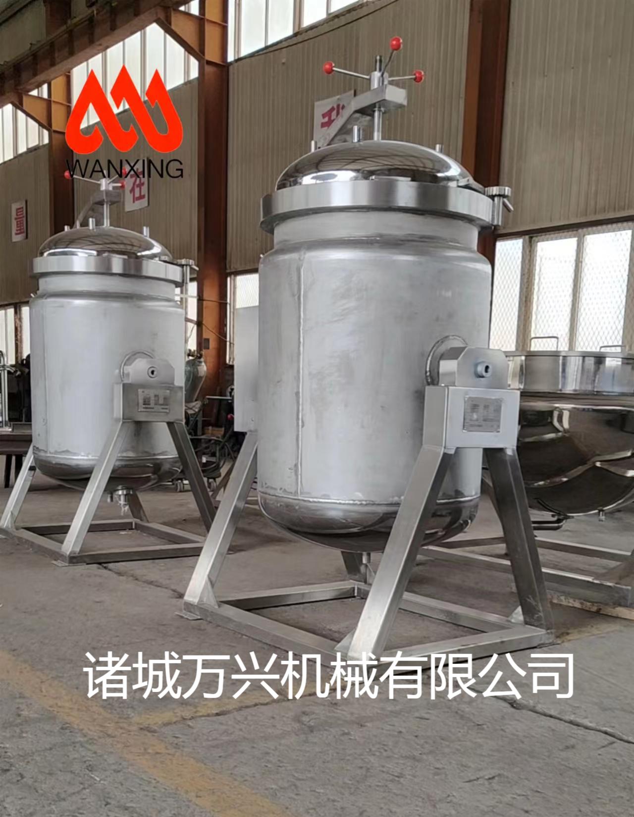 設(shè)備特點(diǎn): 1、利用盤(pán)管循環(huán)蒸汽間接加熱或蒸汽直接加熱,使鍋內(nèi)溫度更均勻。 2、蒸煮出料時(shí)鍋內(nèi)湯汁不需要排出,可連續(xù)使用,節(jié)約了能源。 3、鍋體外部用保溫層保溫,避免鍋內(nèi)熱量散失及人員操作時(shí)高溫燙傷。 4、鍋門(mén)結(jié)構(gòu)改過(guò)去法蘭螺栓連接固定式為液壓快開(kāi)式。并安裝了光電限位、聯(lián)鎖、互鎖功能。 5、鍋門(mén)為充氣密封,在鍋上限水位安裝視鏡便于及時(shí)增補(bǔ)湯汁。 6、多臺(tái)設(shè)備共用一臺(tái)液壓站,操作時(shí)可單一操作,節(jié)省空間降低成本。 7、具有良好的蒸煮均勻性,確保在蒸煮過(guò)程中受熱均勻,以避免某些部分過(guò)于干燥或不充分蒸熟。