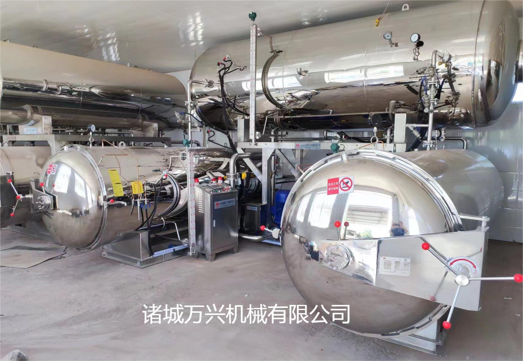 1、全水浸泡殺菌,兩臺殺菌釜同時使用一罐熱水工作,一釜內的食品處理完后,當另一釜在工作時,可先將高溫處理水注入熱水罐內,減少處理水和熱量的損耗,減少等待時間,比雙層殺菌釜提高一倍產能。