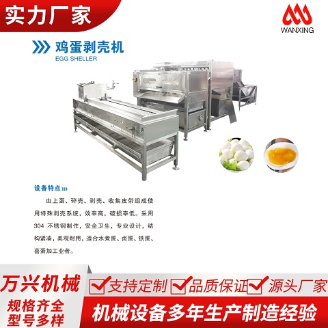 由上蛋、碎殼、剝殼、收集皮帶組成使用特殊剝殼系統(tǒng),效率高,破損率低。采用304 不銹鋼制作,安全衛(wèi)生,專業(yè)設(shè)計(jì),結(jié)構(gòu)緊湊,美觀耐用,適合水煮蛋、鹵蛋、鐵蛋、喜蛋加工業(yè)者。